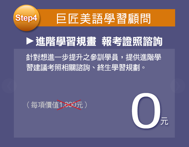 1.分為四步驟,能力檢測、個別諮詢、課程培訓、考照輔導 2.免費申請熱門美語課程1200堂
